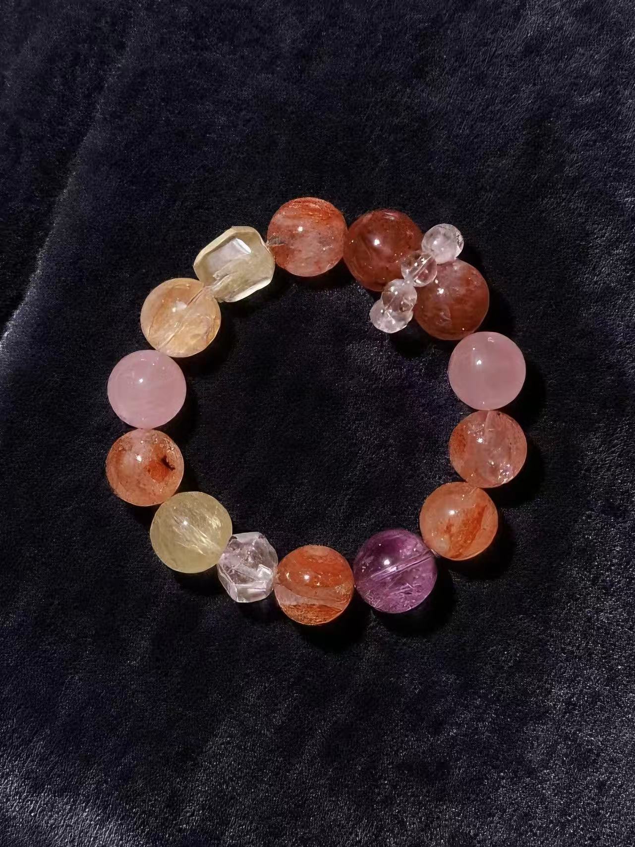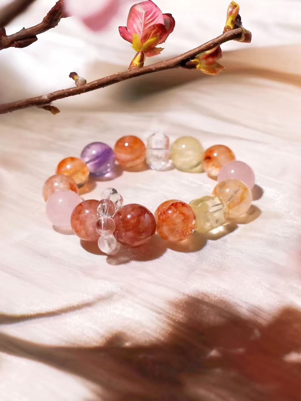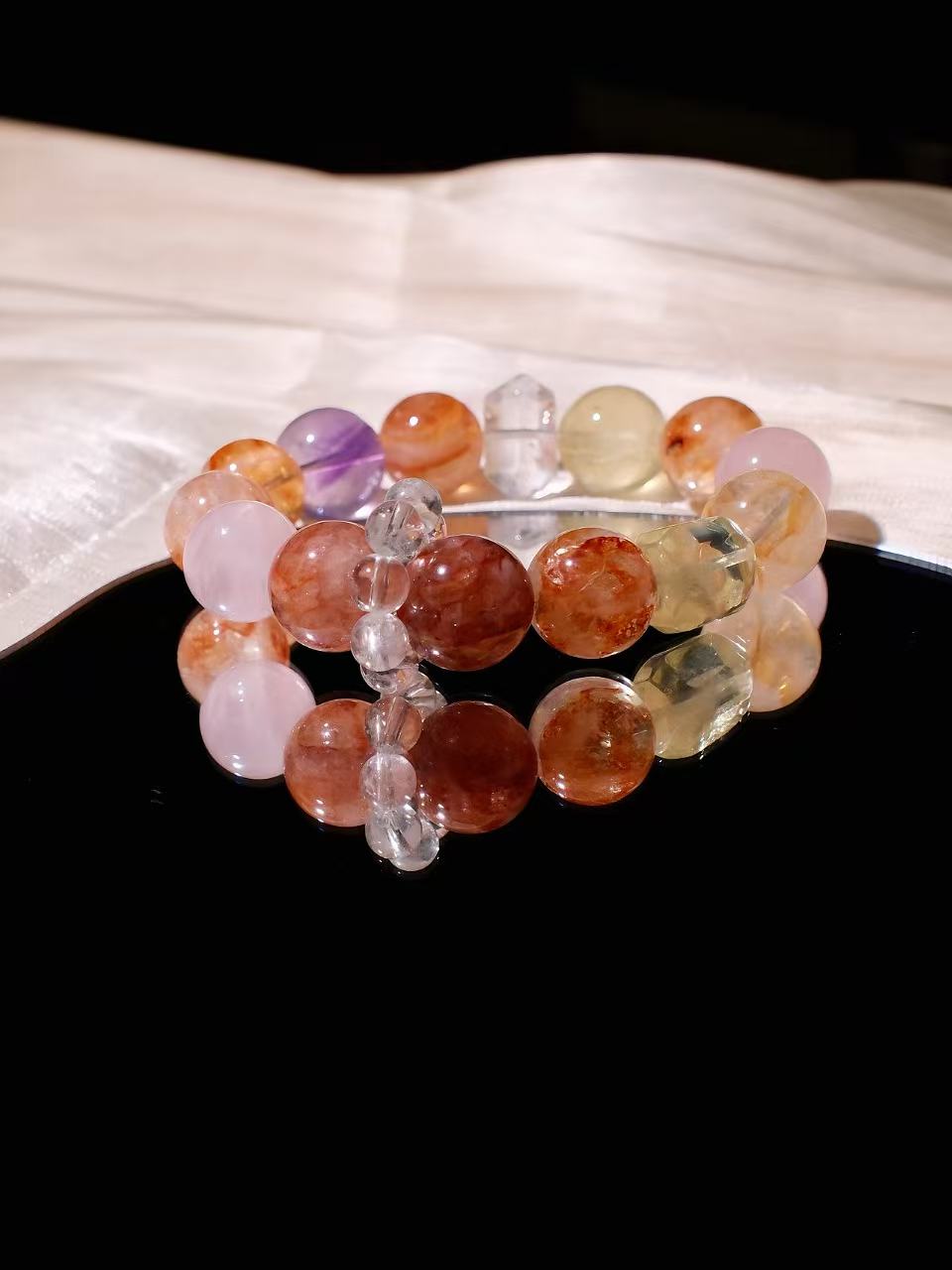 Citrine, Amethyst & Rose Quartz Healing Crystal Bracelet · Sunset Mountains