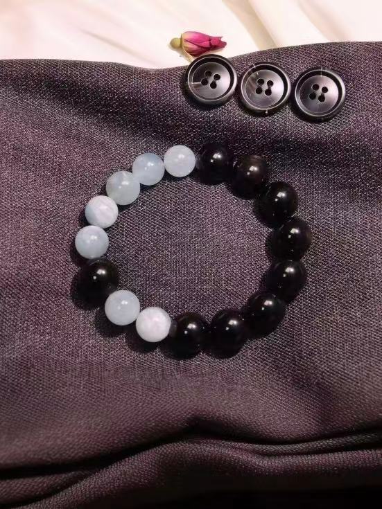 Silver Sheen Obsidian & Aquamarine Crystal Bracelet for Men · Celestial Lotus