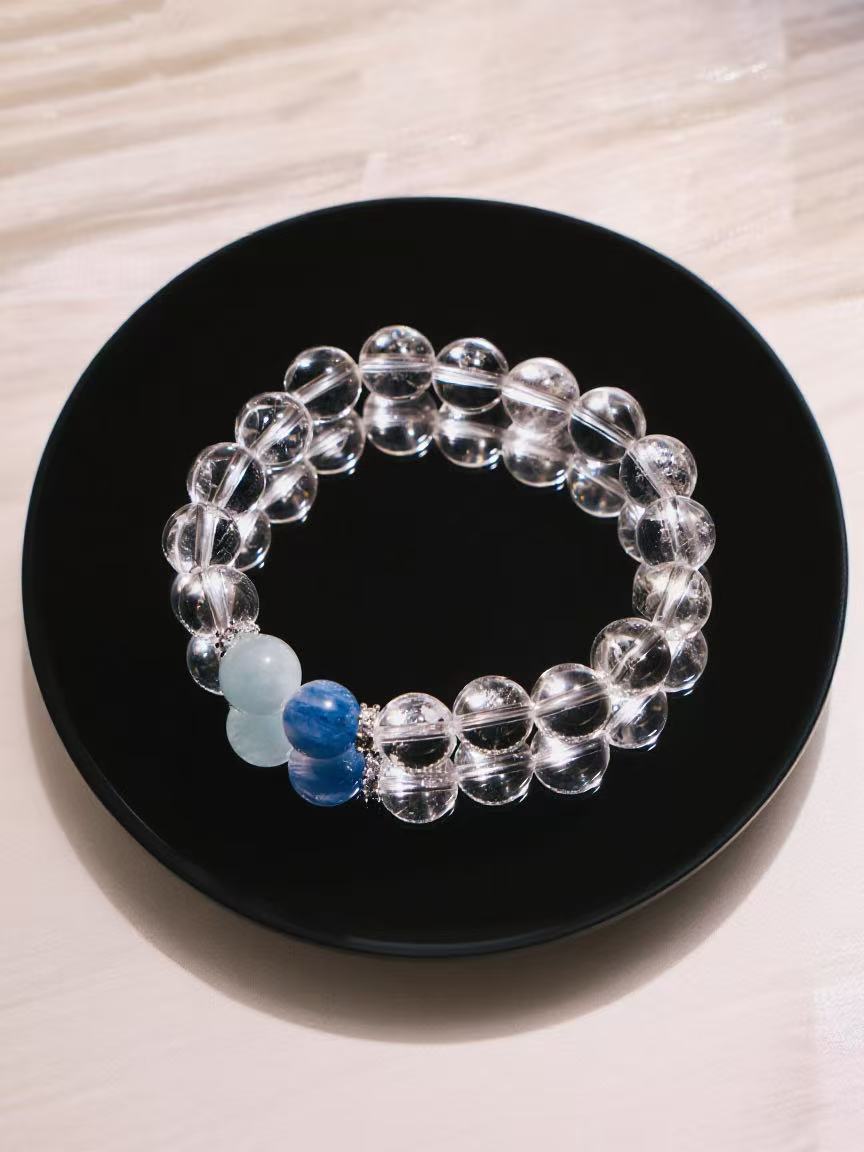 Aquamarine & Clear Quartz Crystal Bracelet · Blue Stillness