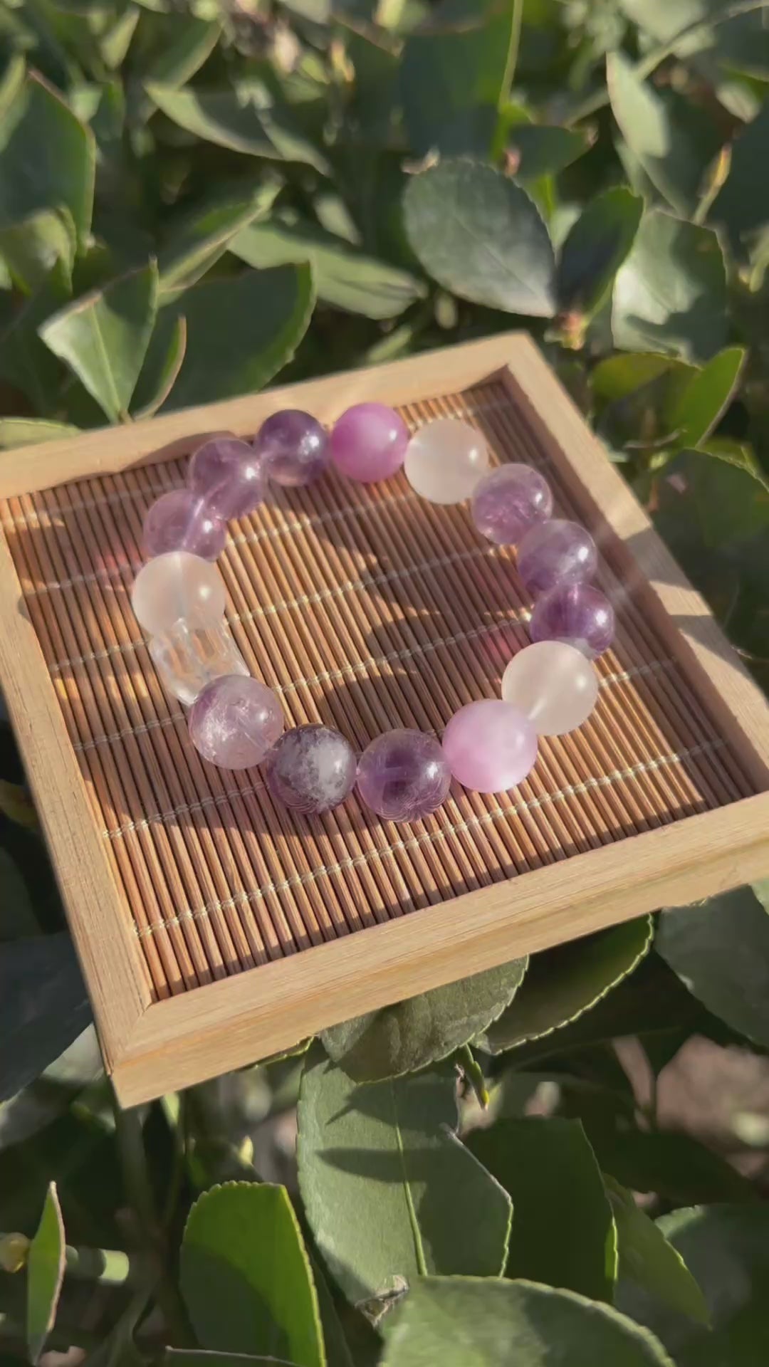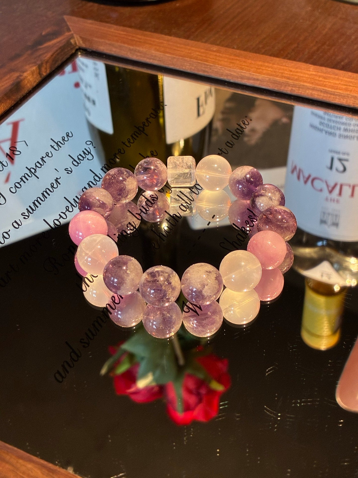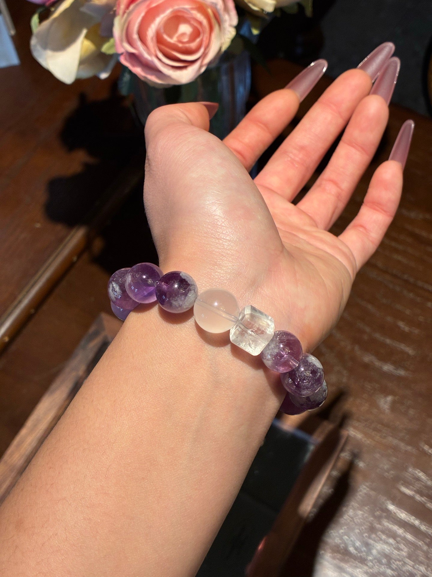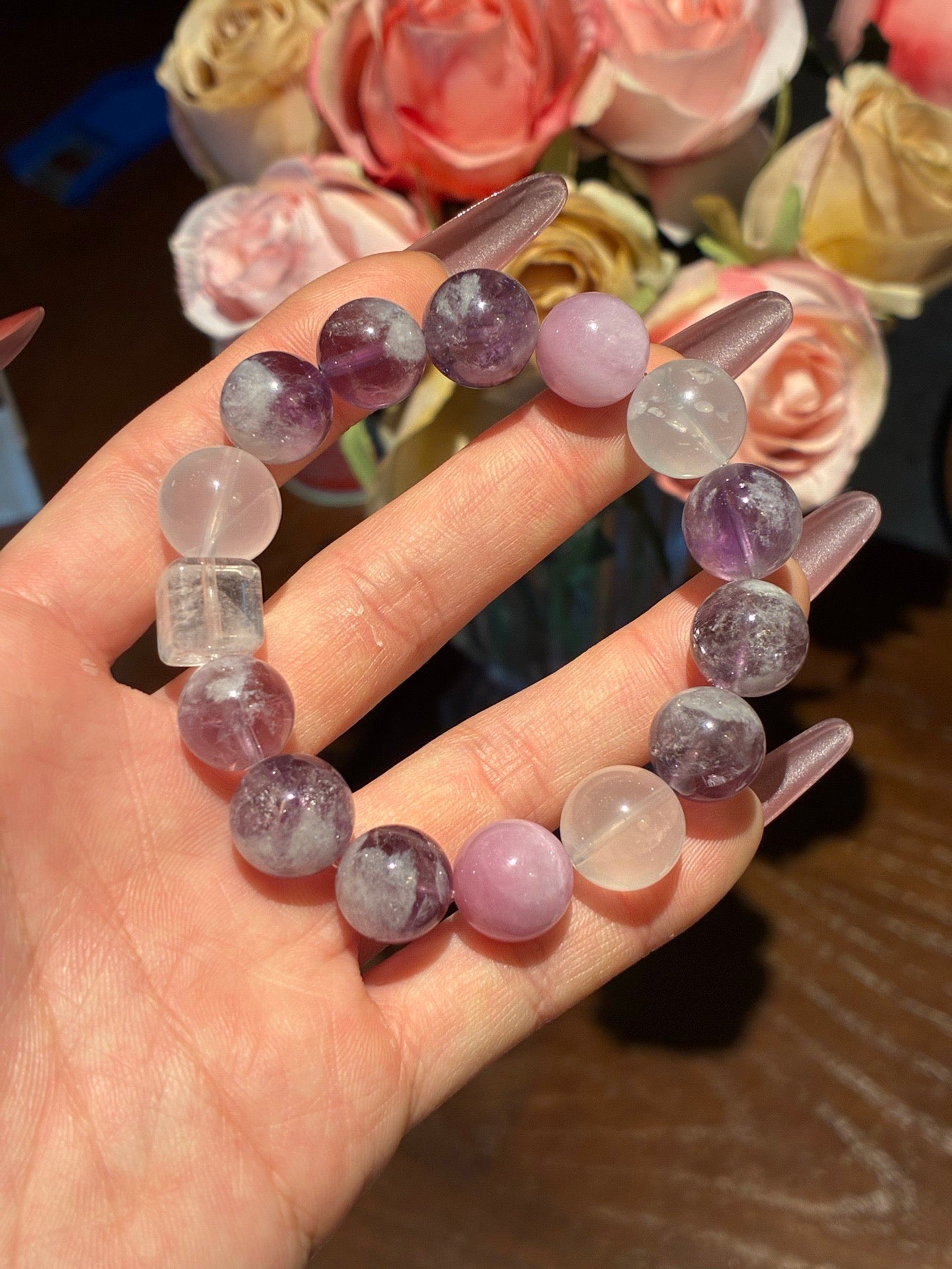 12mm Kunzite Amethyst Crystal Bracelet – Feng Shui Anxiety Relief - Moonlit Cat