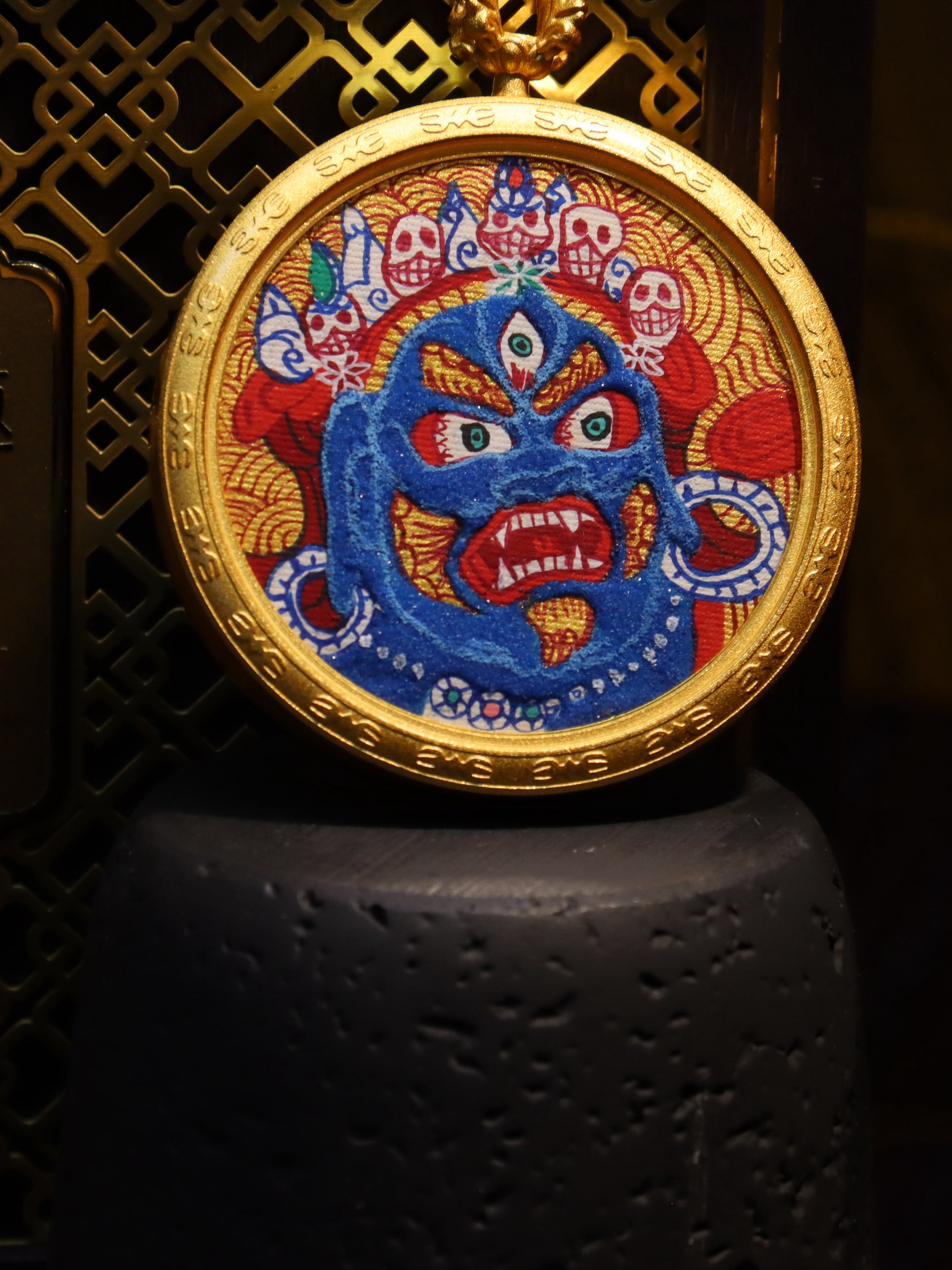 Every Thangka is hand-painted over weeks or months using time-honored methods. The process is entirely manual — no machines, no printing, only patience and prayer. To care for your Thangka pendant, keep it away from moisture and direct sunlight, and gently wipe it with a dry cloth. You may also place it in a calm space or near incense to preserve its sacred energy.